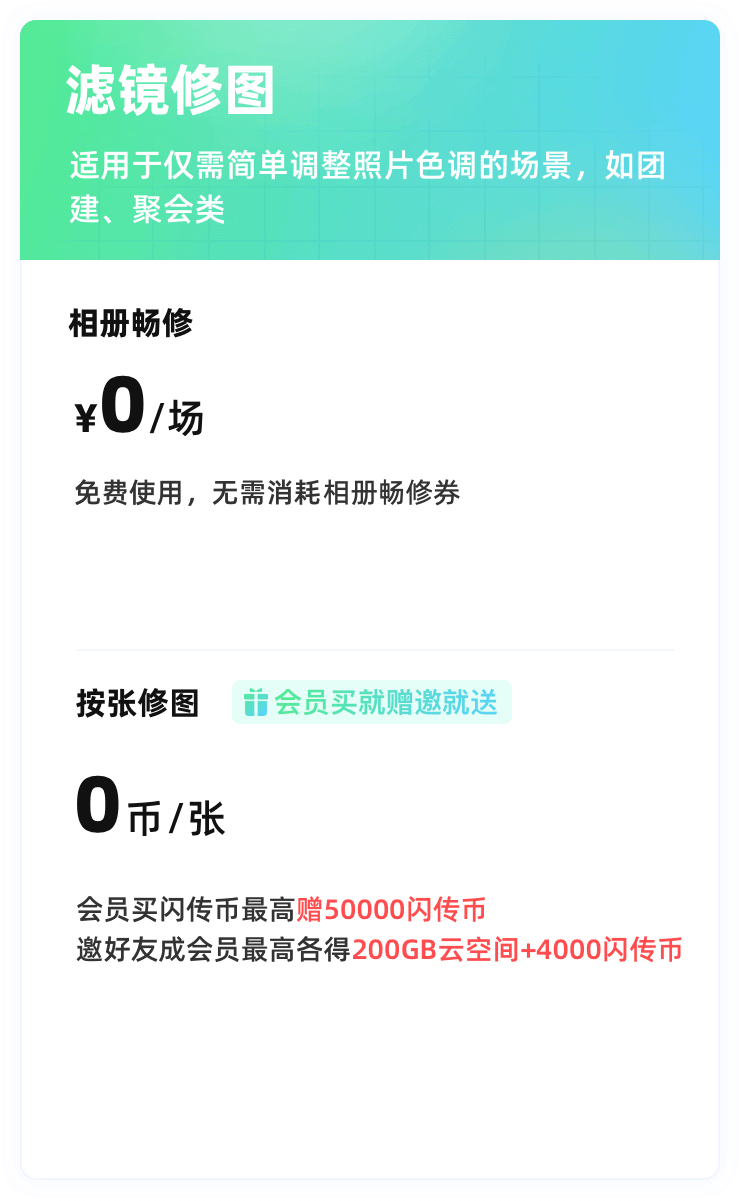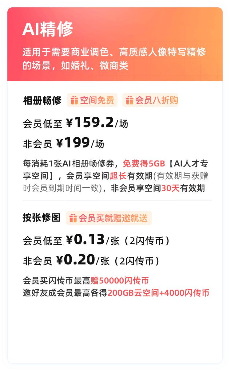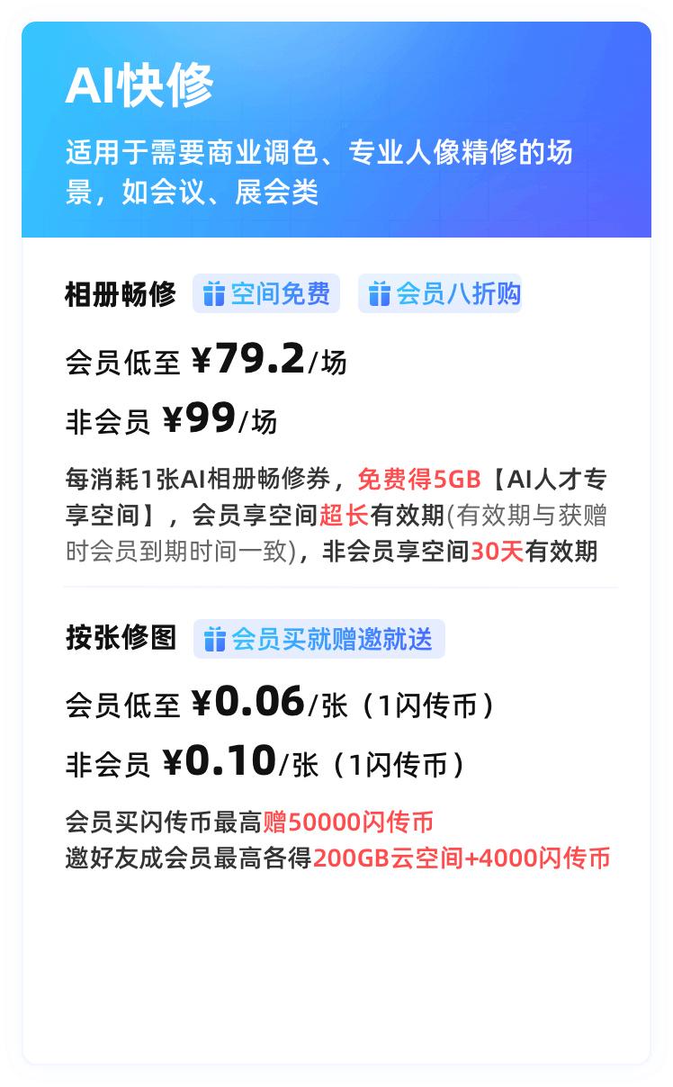 喔图AI智能修图费用远低于人工修图费用,每场活动不限机位